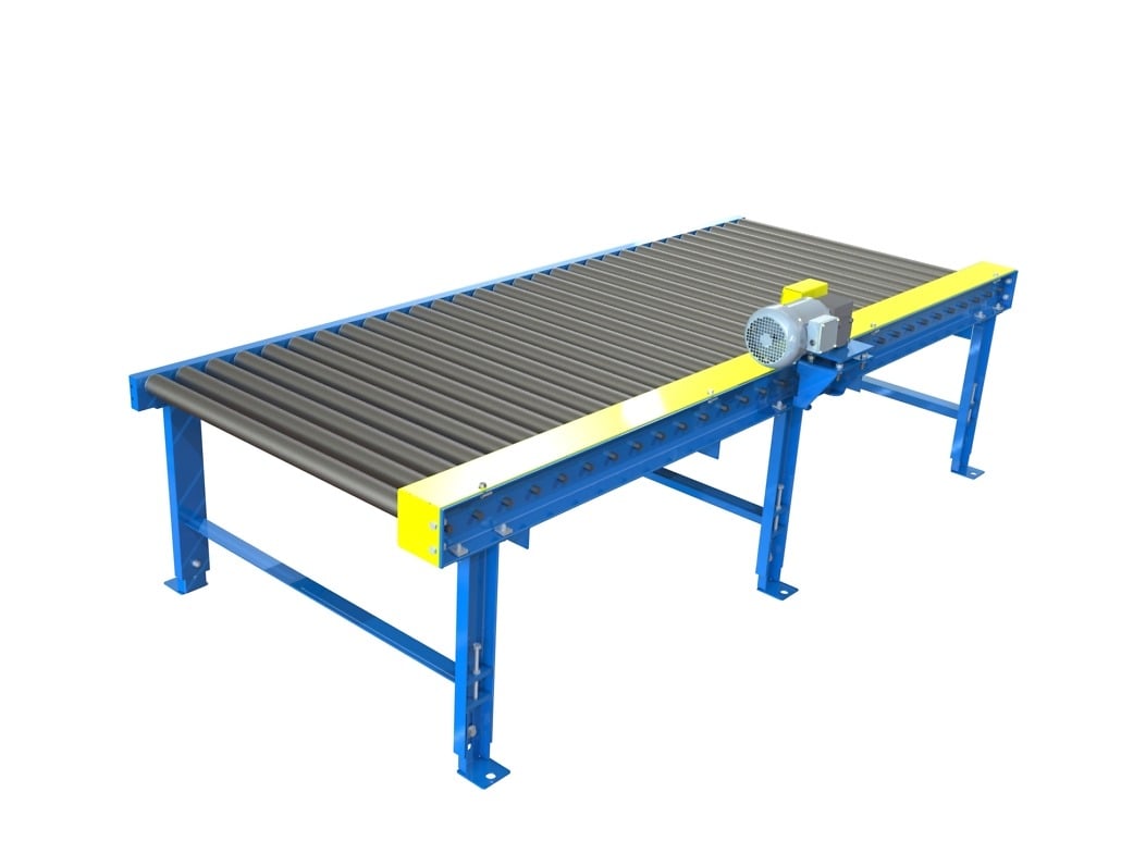 Powered CDLR Conveyor | Jackbolt Supports | 48” Wide x 10’ Long | 4” Centers